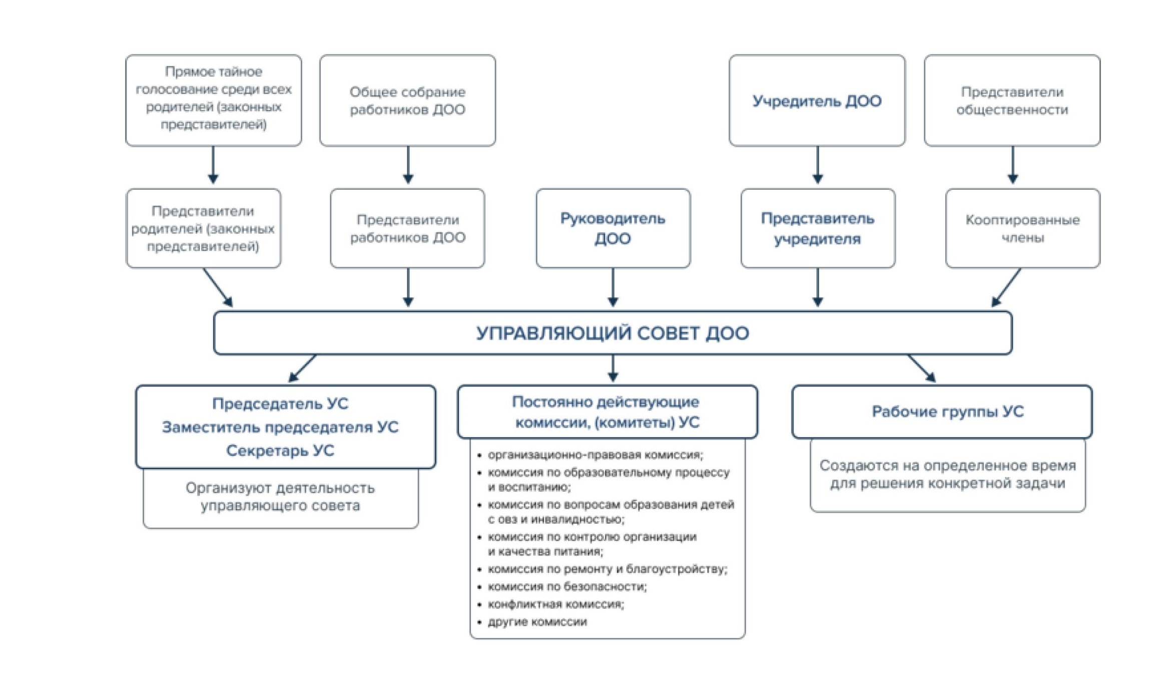- Структура управляющего совета - с указанием наименования всех действующих комиссий и рабочих групп управляющего совета;